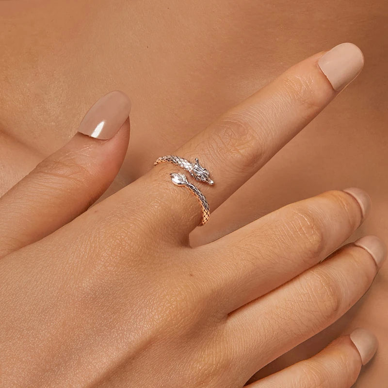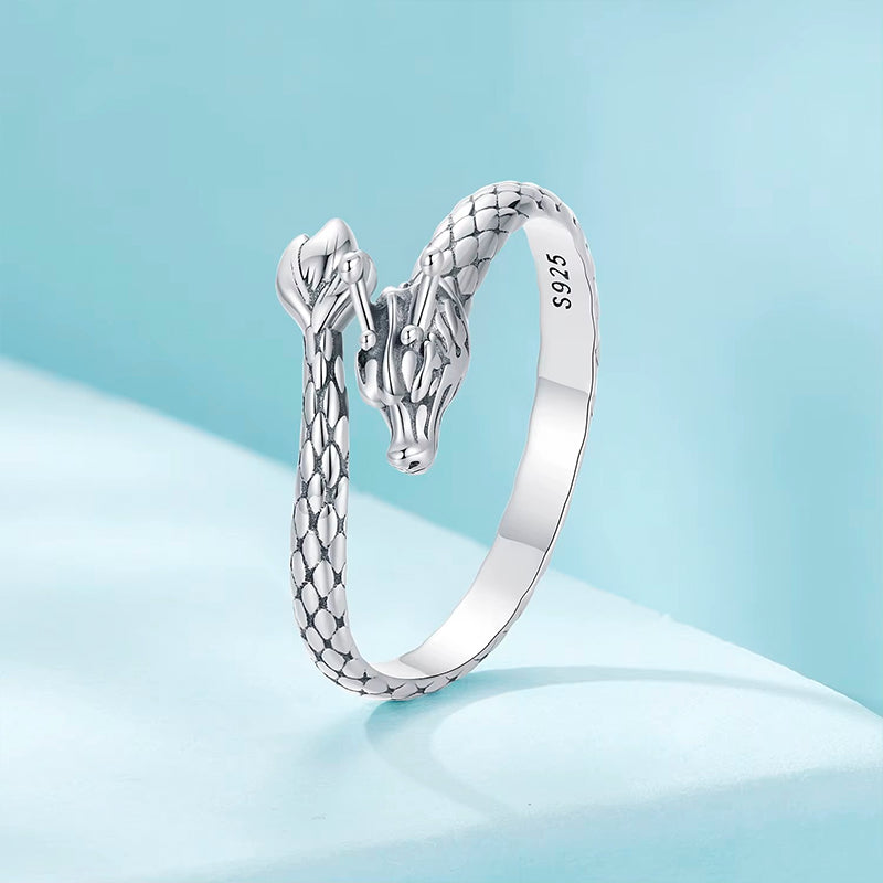 Com um design encantador e detalhes refinados, este anel de prata 925 apresenta um impressionante padrão de dragão, símbolo de força e sabedoria. Perfeito para quem busca um acessório elegante e cheio de personalidade.