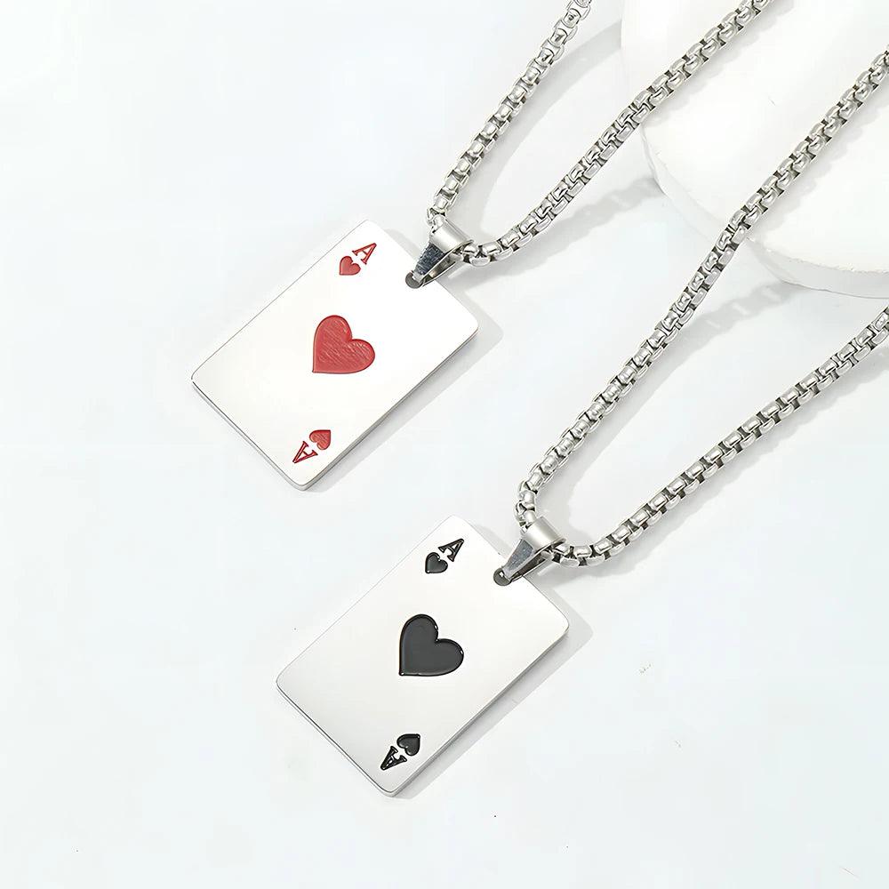 O Colar de Cartas de Pôquer é a escolha perfeita para quem adora um estilo único e ousado. Com um pingente inspirado nas cartas Ás de Espadas e Ás de Copas, ele traz um toque rocker e moderno para seu visual. Ideal para quem busca um acessório que destaque sua personalidade e atitude.