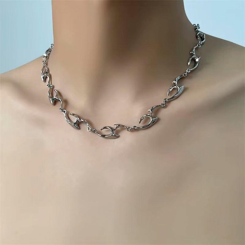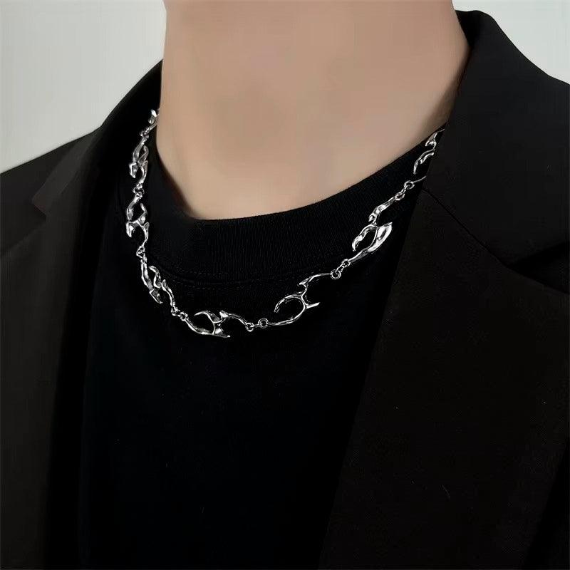 Com um visual moderno e marcante, este colar de aço inoxidável traz um design irregular que adiciona personalidade ao seu estilo. Perfeito para quem busca uma peça única e sofisticada, combinando com qualquer look, do casual ao streetwear.
